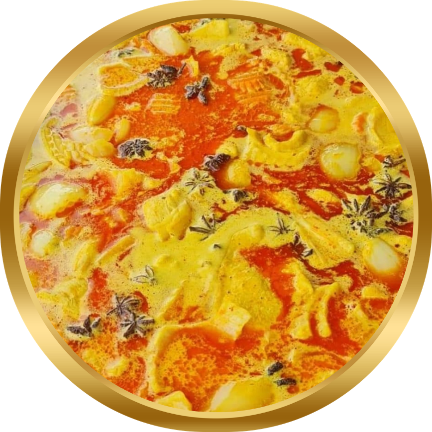 A mild/non-spicy yet flavourful Chicken curry with cream, coconut milk, pineapple, baby potato’s and a variety of fresh vegetables.