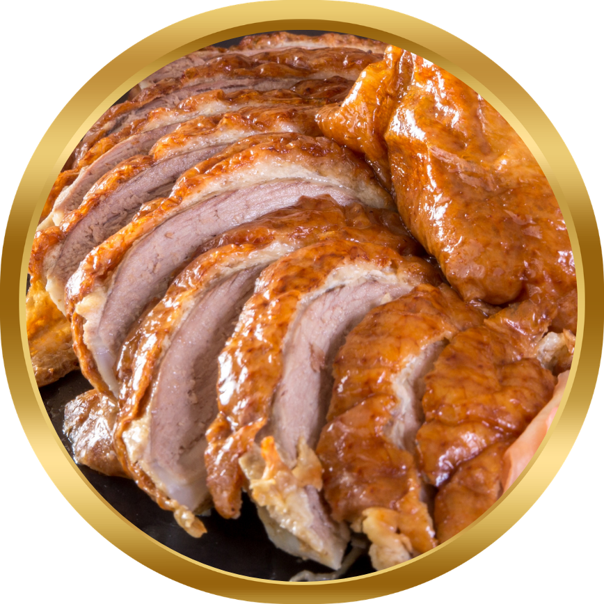Rosted duck with honey, ginger and sesame oil