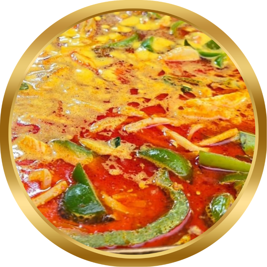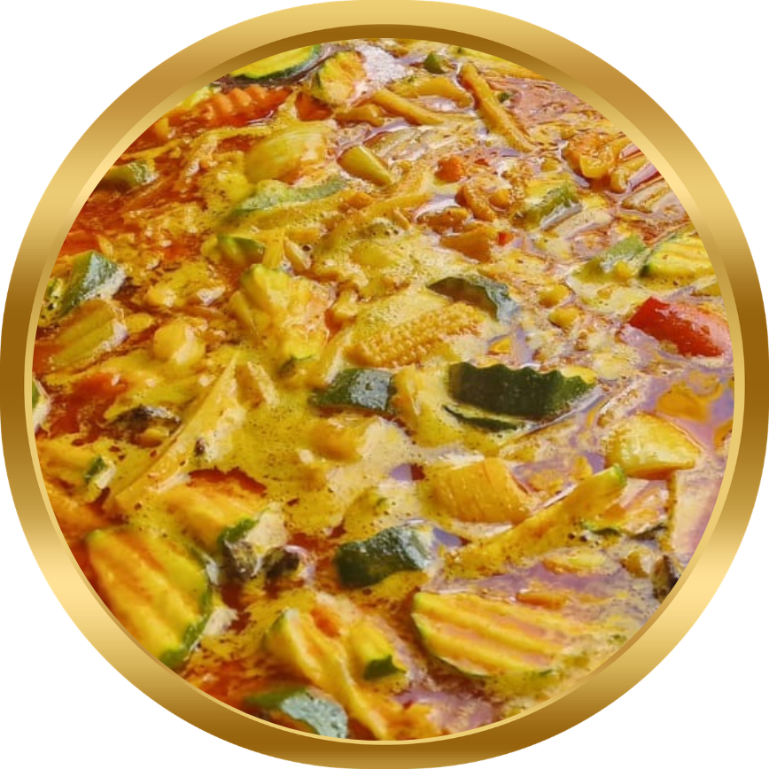 A vibrant, spicy yet creamy red style curry, with coconut milk & fresh vegetables.