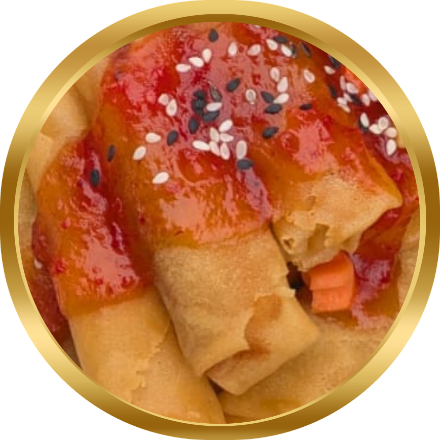 Crispy vegetarian rolls filled with a tantalising mix of vegetables served with our homemade sweet chilli sauce and veggie sprinkles.